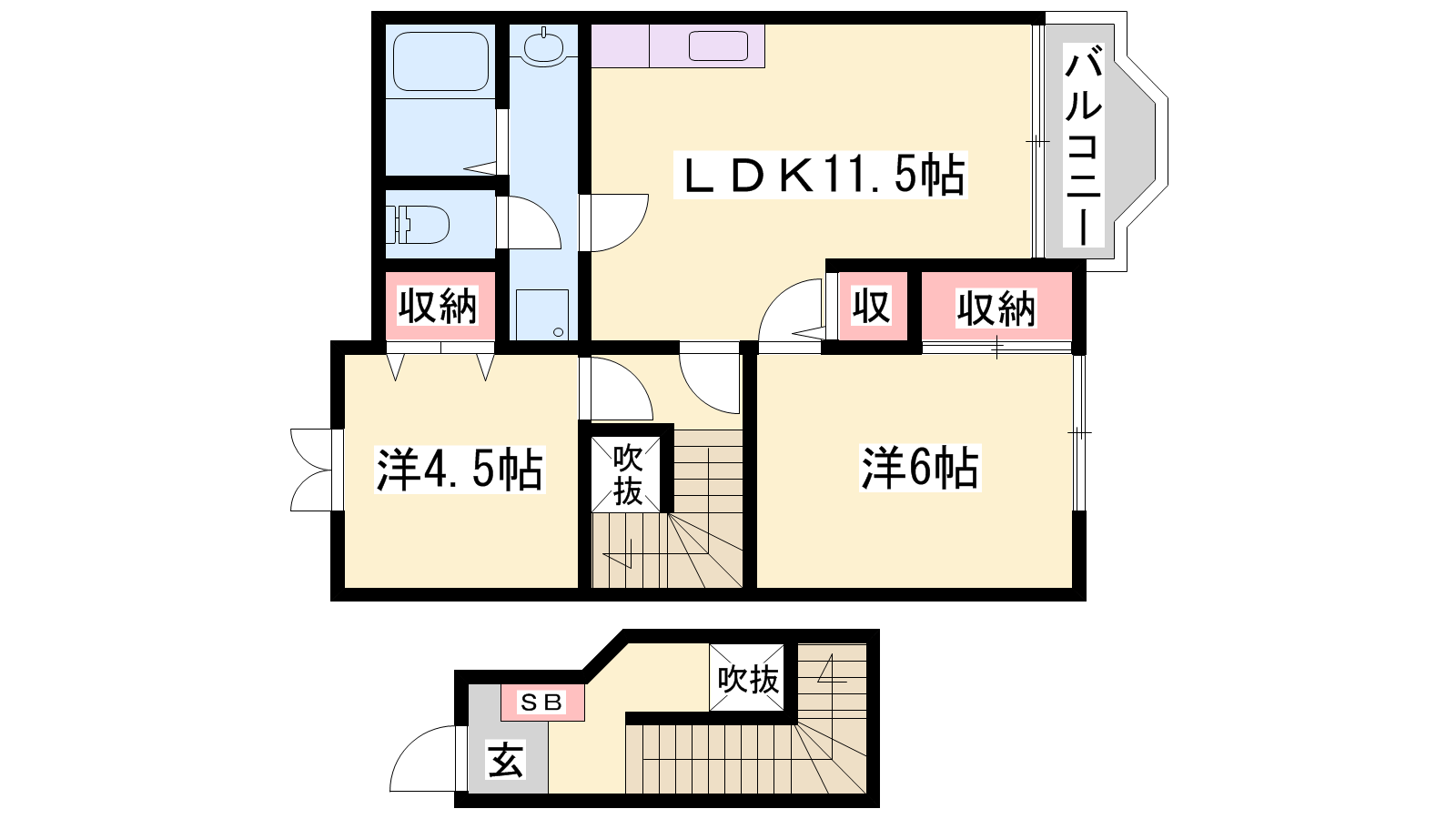 - LDK11.5帖、洋室4.5帖、洋室6帖