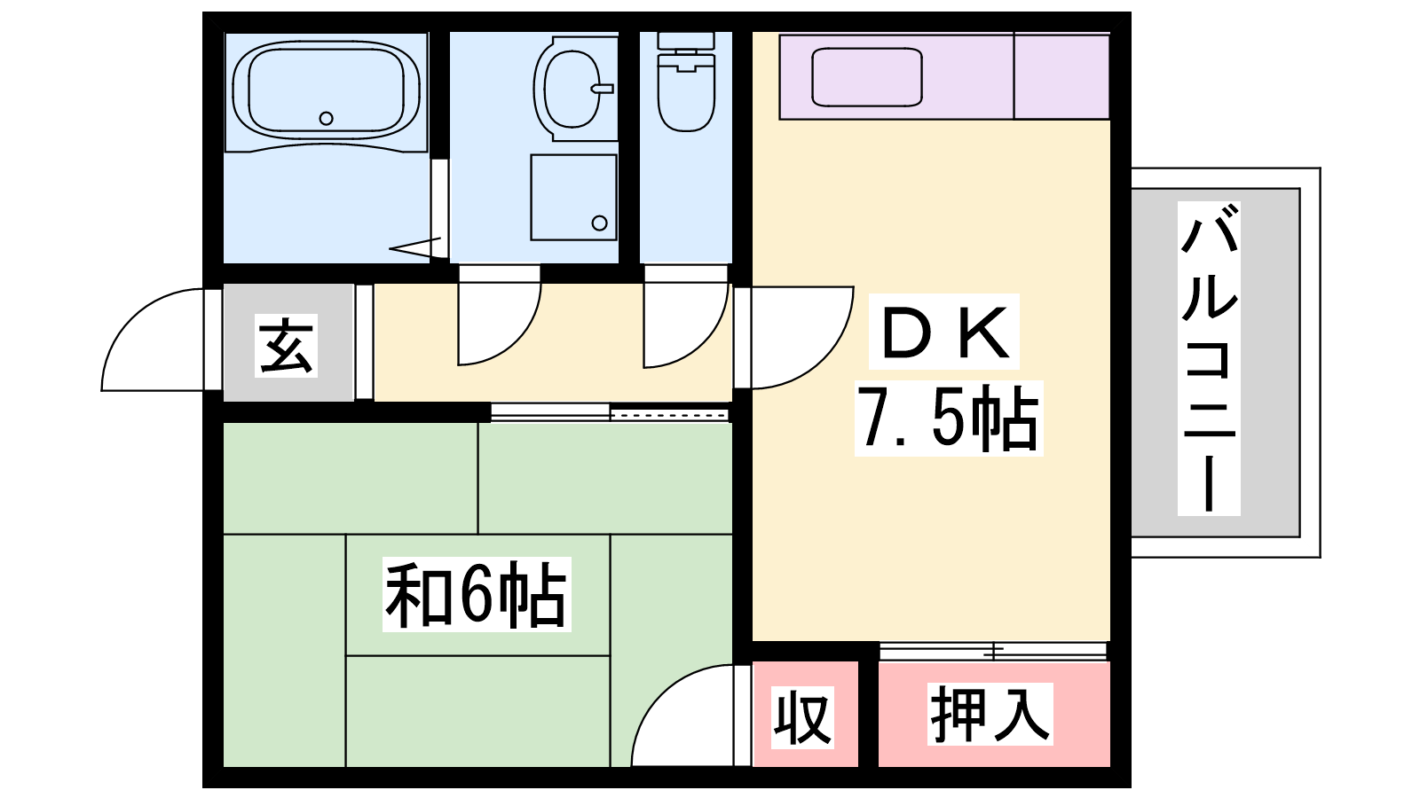 - DK7.5帖、和室6帖