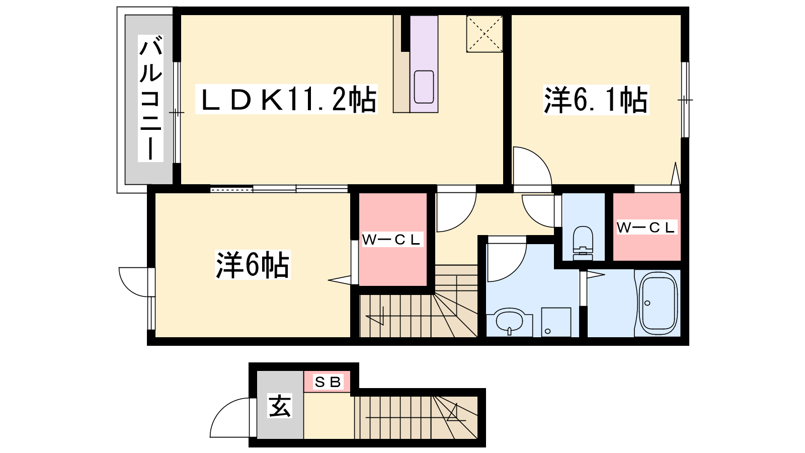 - LDK11.2帖、洋室6.1帖、洋室6帖