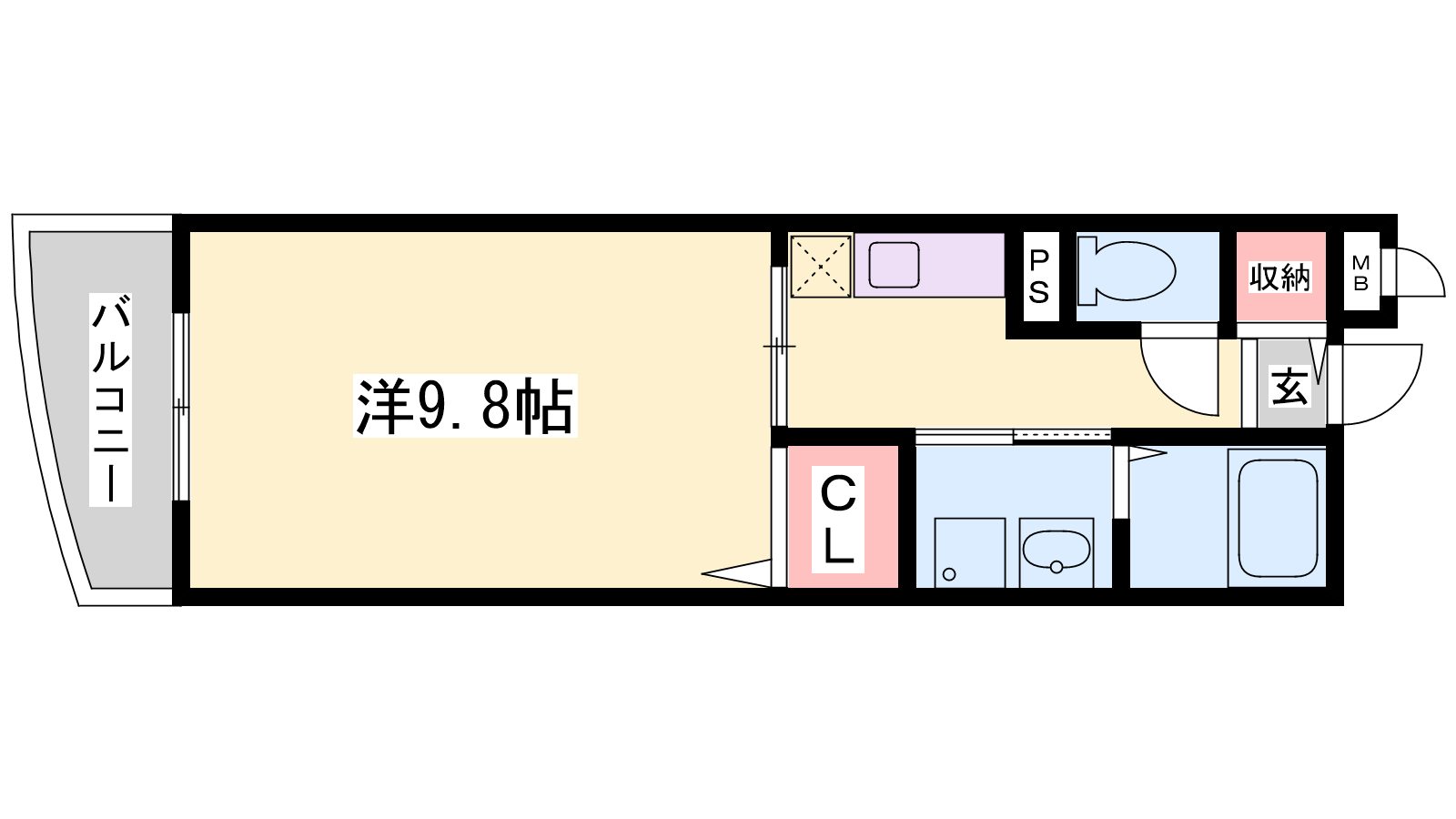 - K3帖、洋室9.8帖