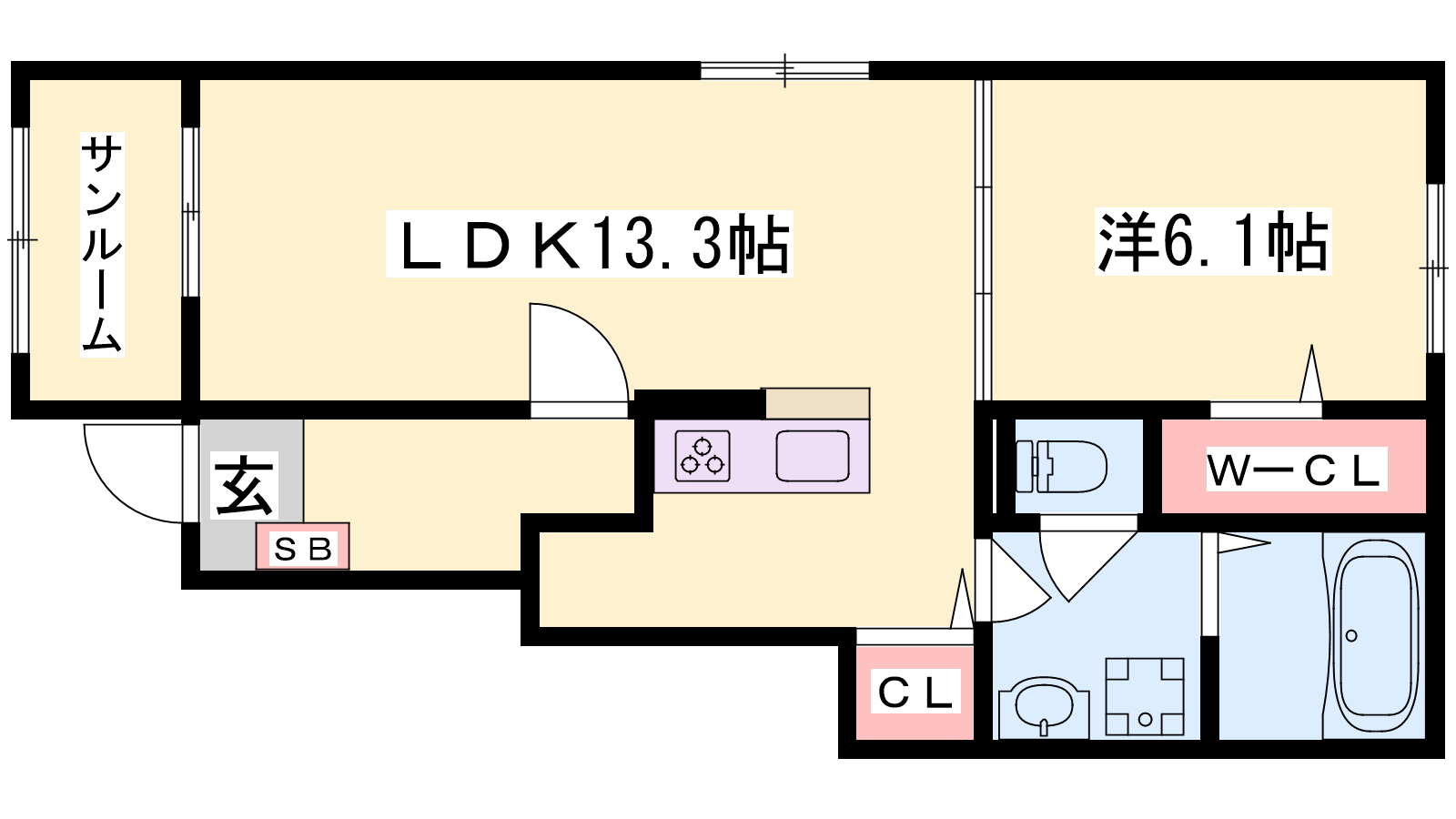 - LDK13.3帖、洋室6.1帖