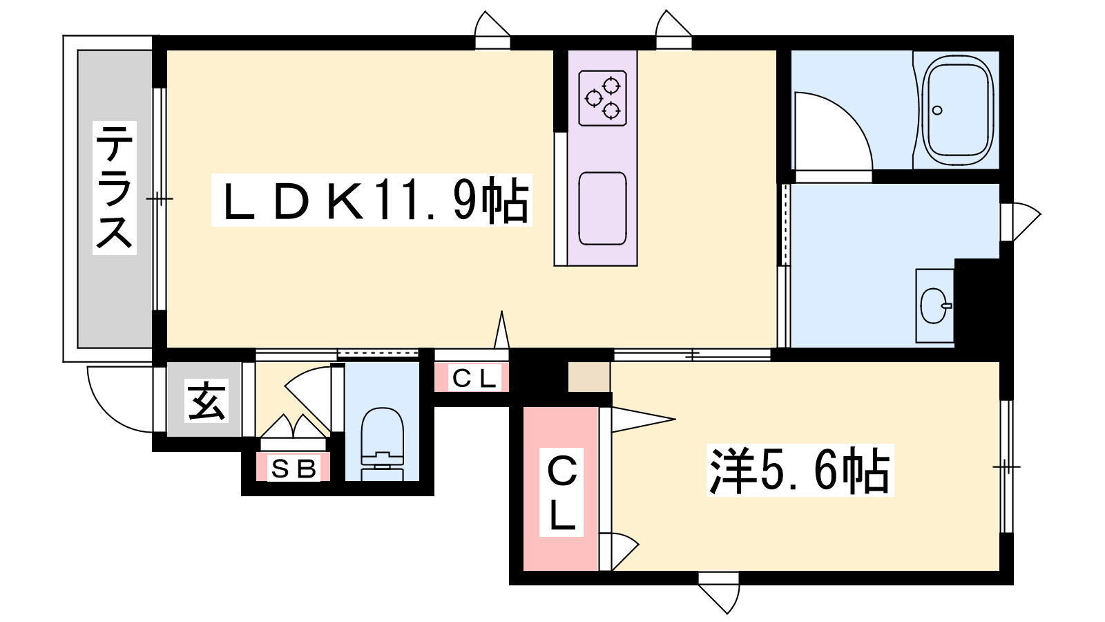 - LDK11.9帖、洋室5.6帖
