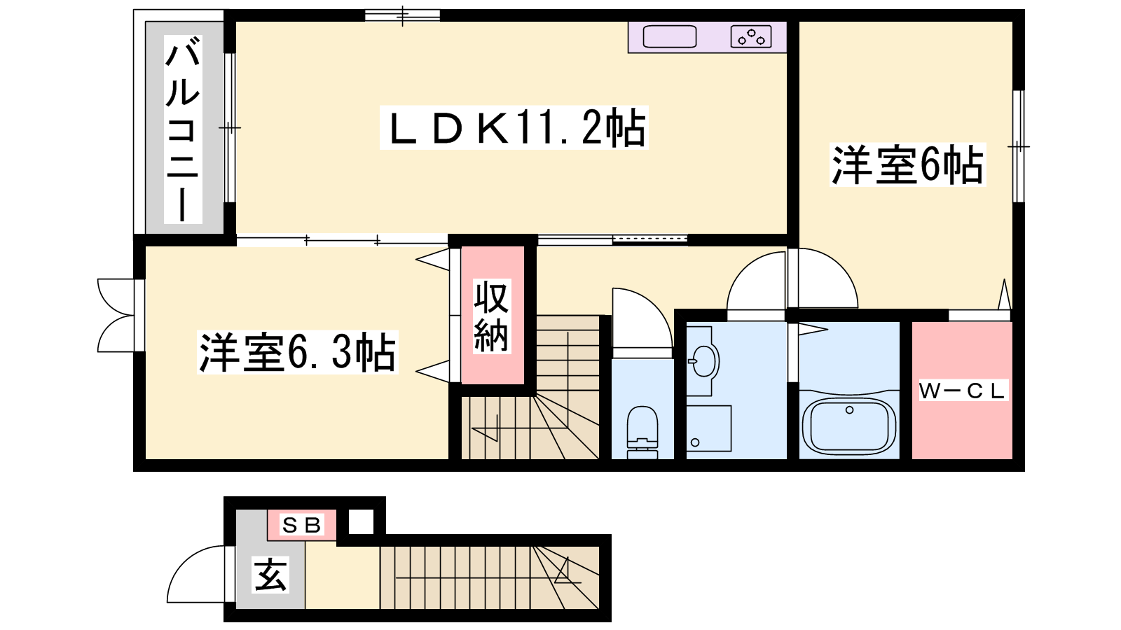- LDK11.2帖、洋室6.3帖、洋室6帖