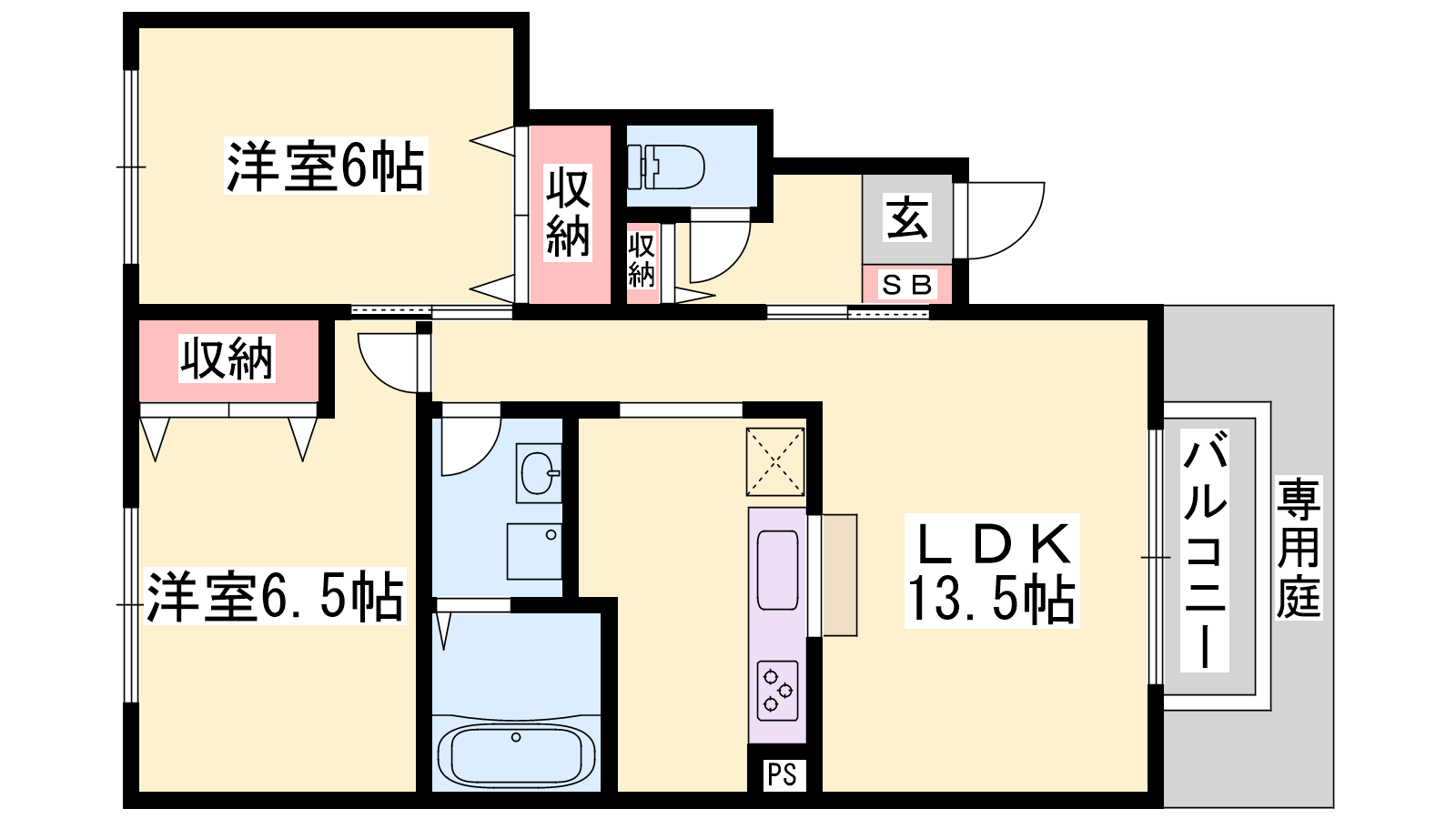 - LDK13.5帖、洋室6.5帖、洋室6帖