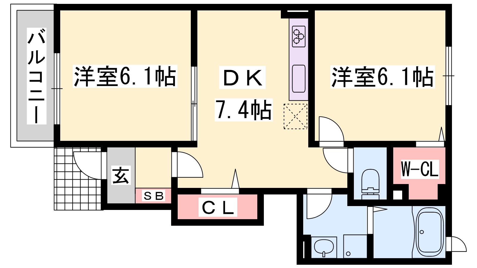- DK7.4帖、洋室6.1帖、洋室6.1帖
