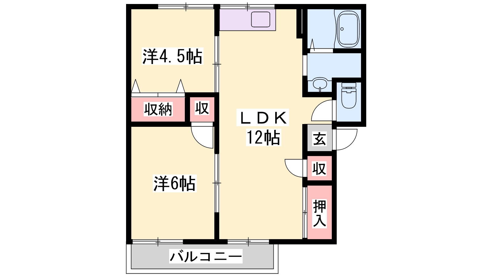 - LDK12帖、洋室6帖、洋室4.5帖