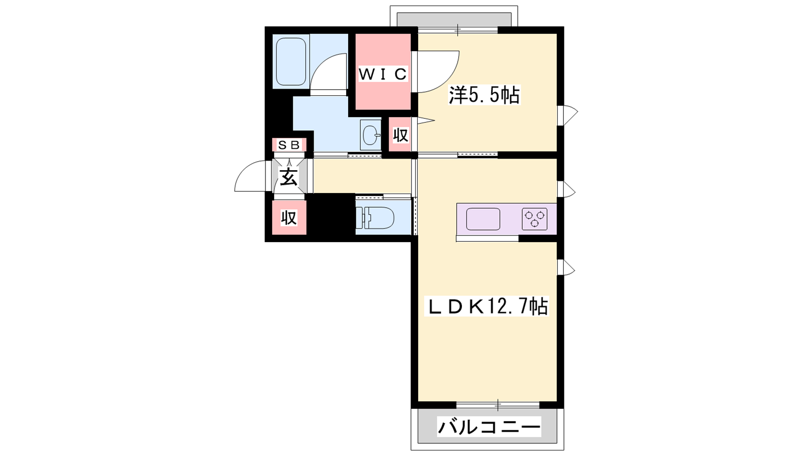 - LDK12.7帖、洋室5.5帖