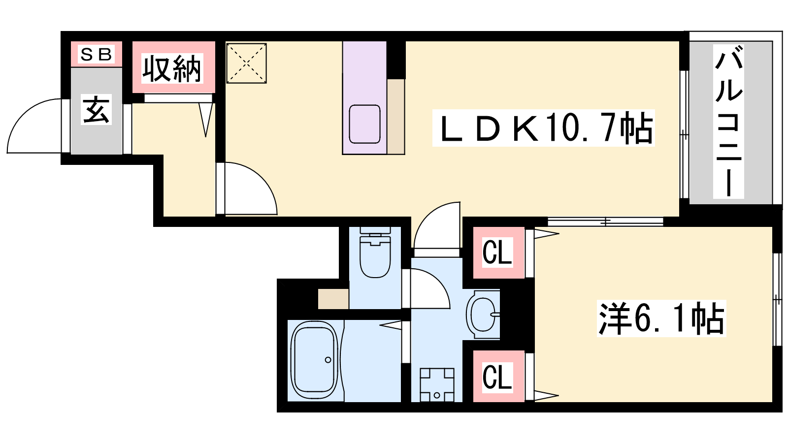 - LDK10.7帖、洋室6.1帖