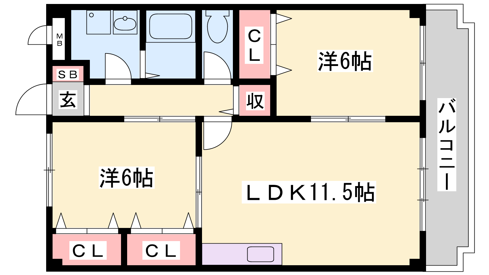 - DK11.5帖、洋室6帖、洋室6帖