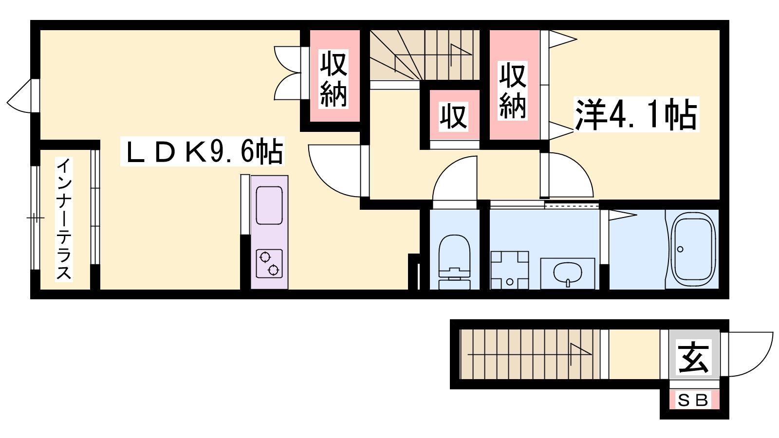 - LDK9.6帖、洋室4.1帖