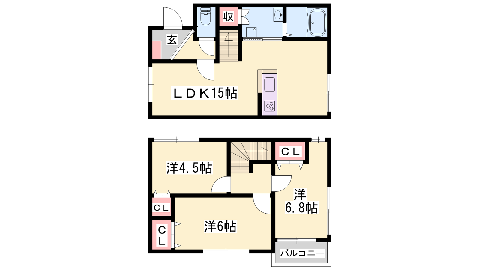 - LDK15帖、洋室6帖、洋室4.5帖、洋室6.8帖