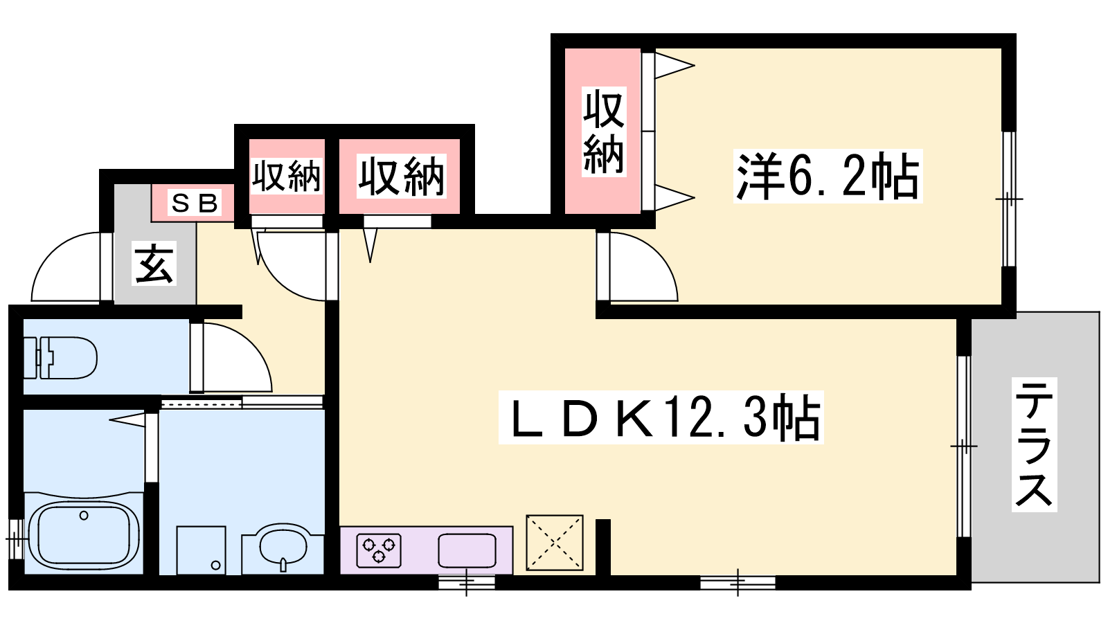 - LDK12.3帖、洋室6.2帖