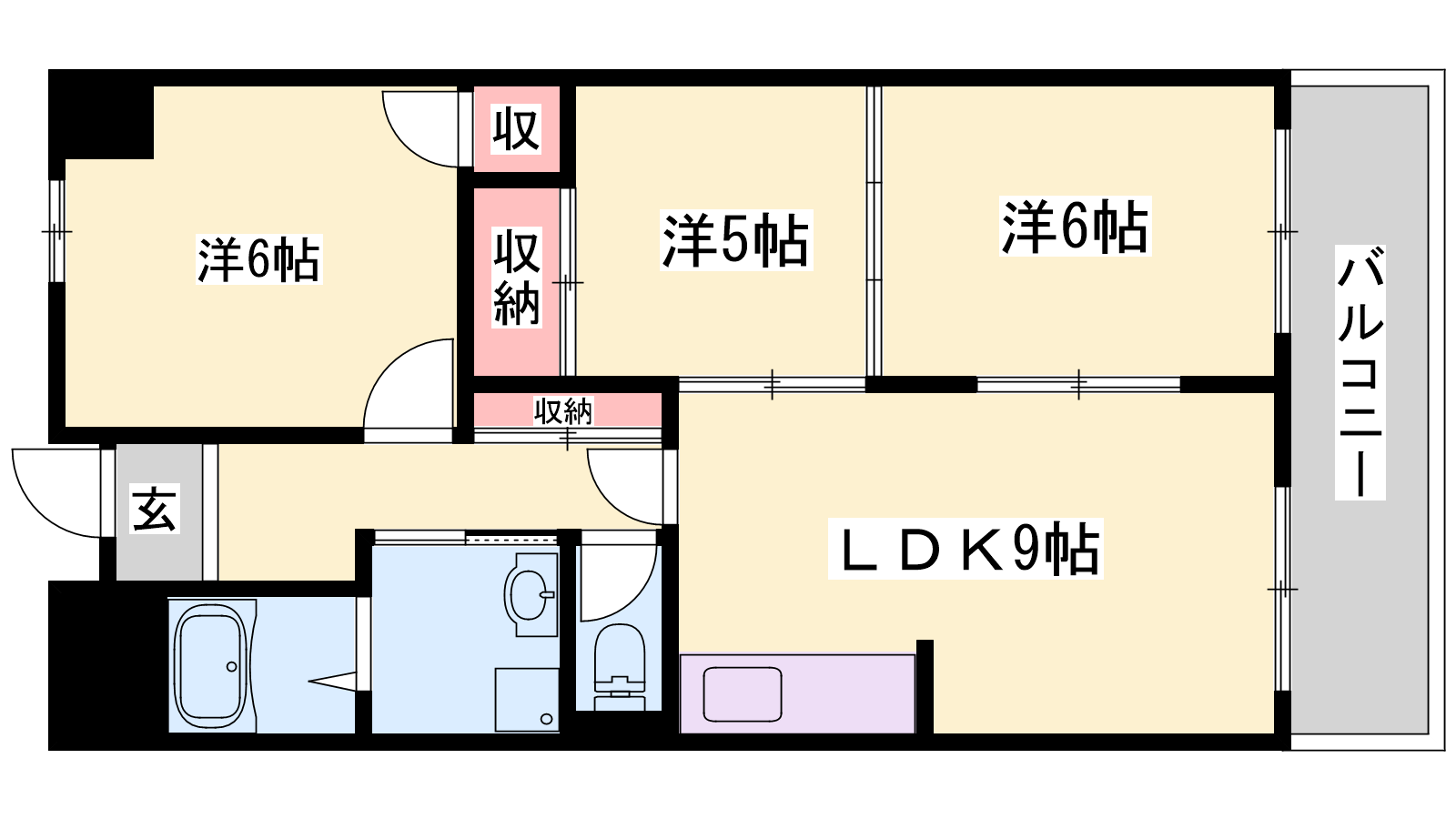 - LDK9帖、洋室6帖、洋室5帖、和室6帖