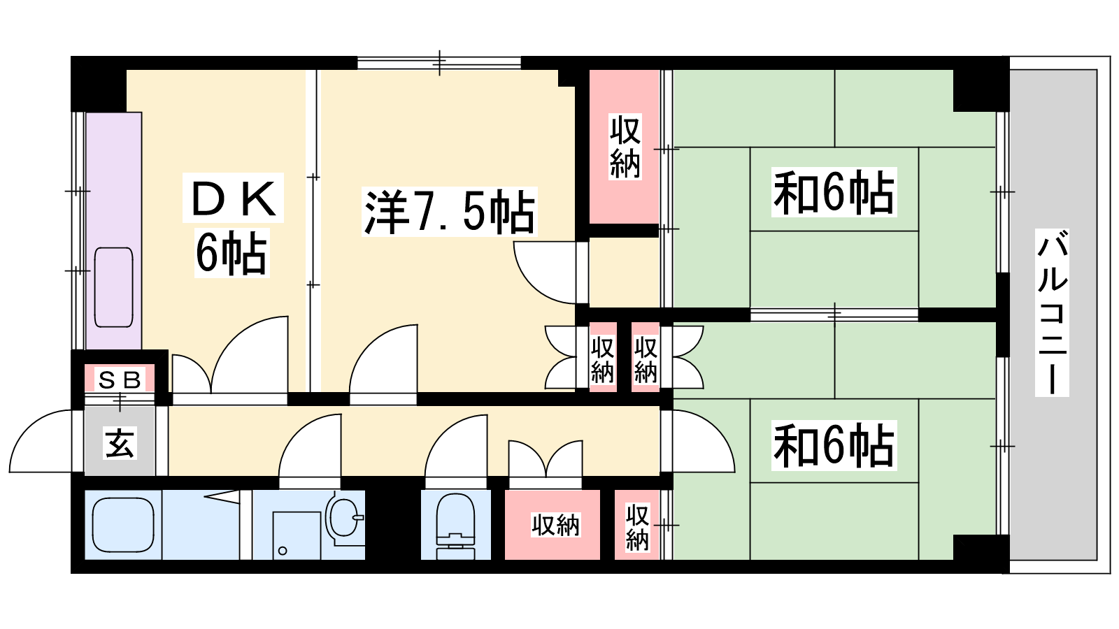 - DK6帖、洋室7.5帖、和室6帖、和室6帖