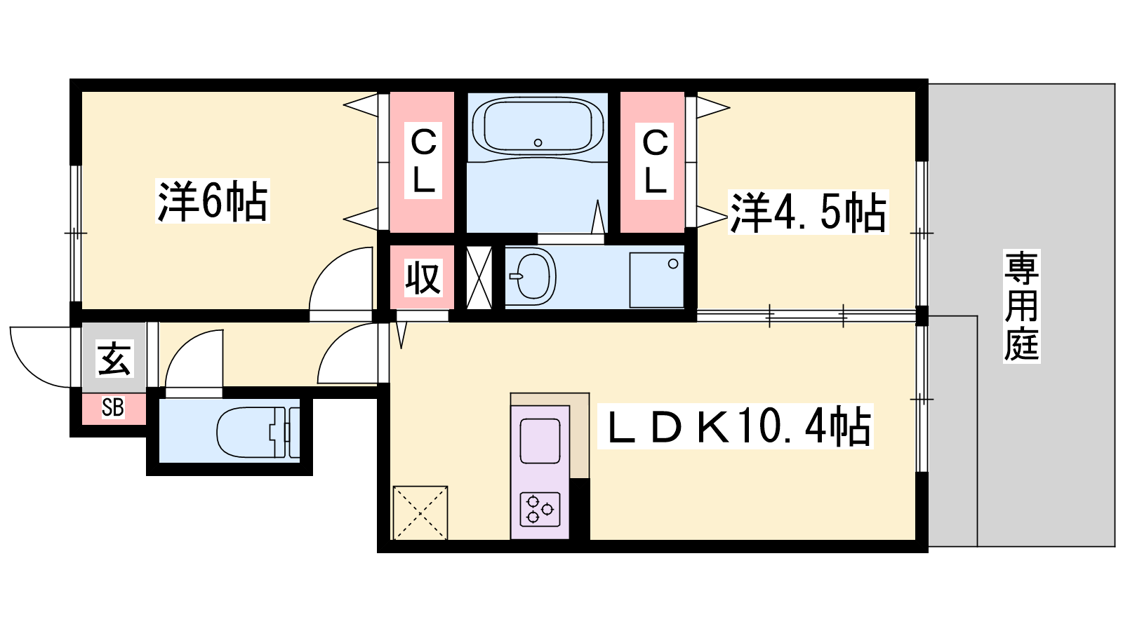 - LDK10.4帖、洋室6帖、洋室4.5帖