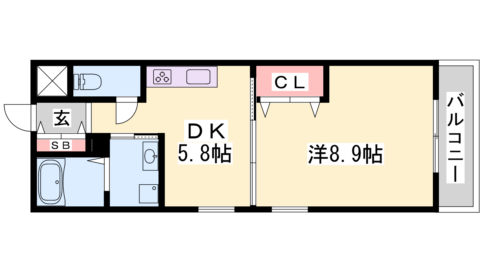 - DK5.8帖、洋室8.9帖