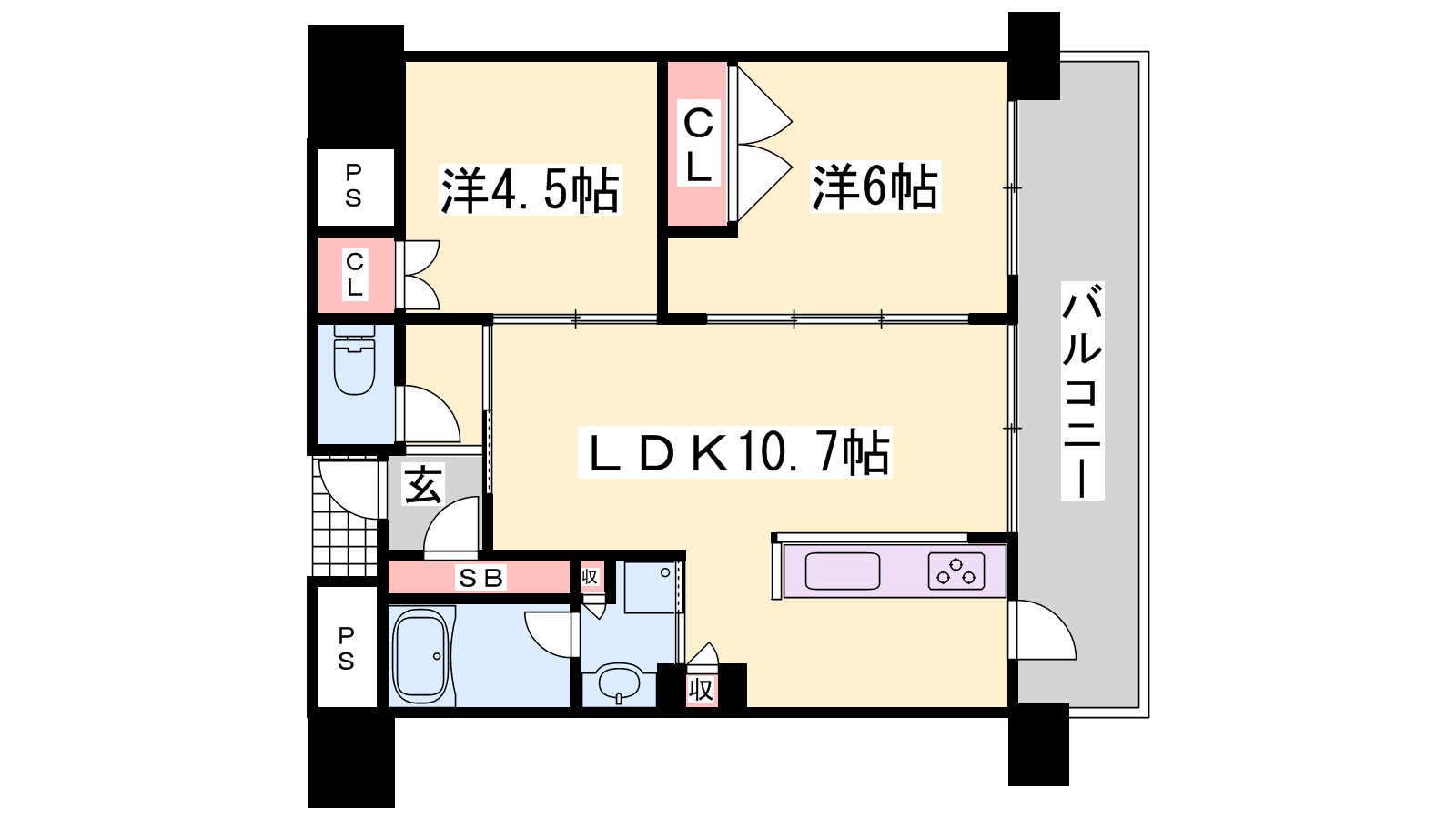 - LDK10.7帖、洋室6帖、洋室4.5帖