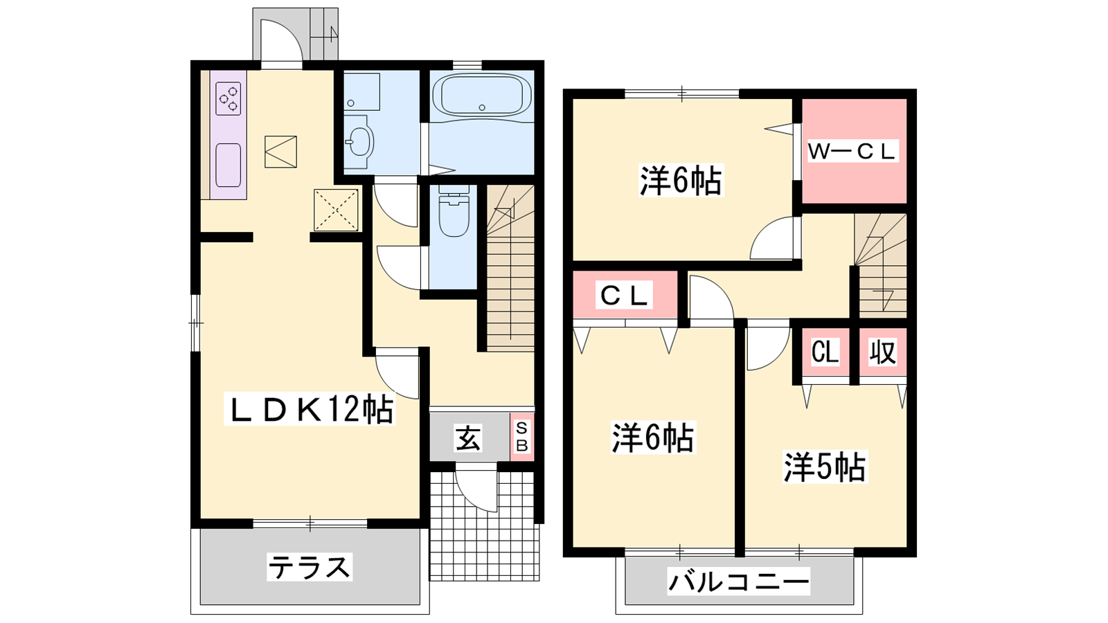 - LDK12帖、洋室6帖、洋室6帖、洋室5帖