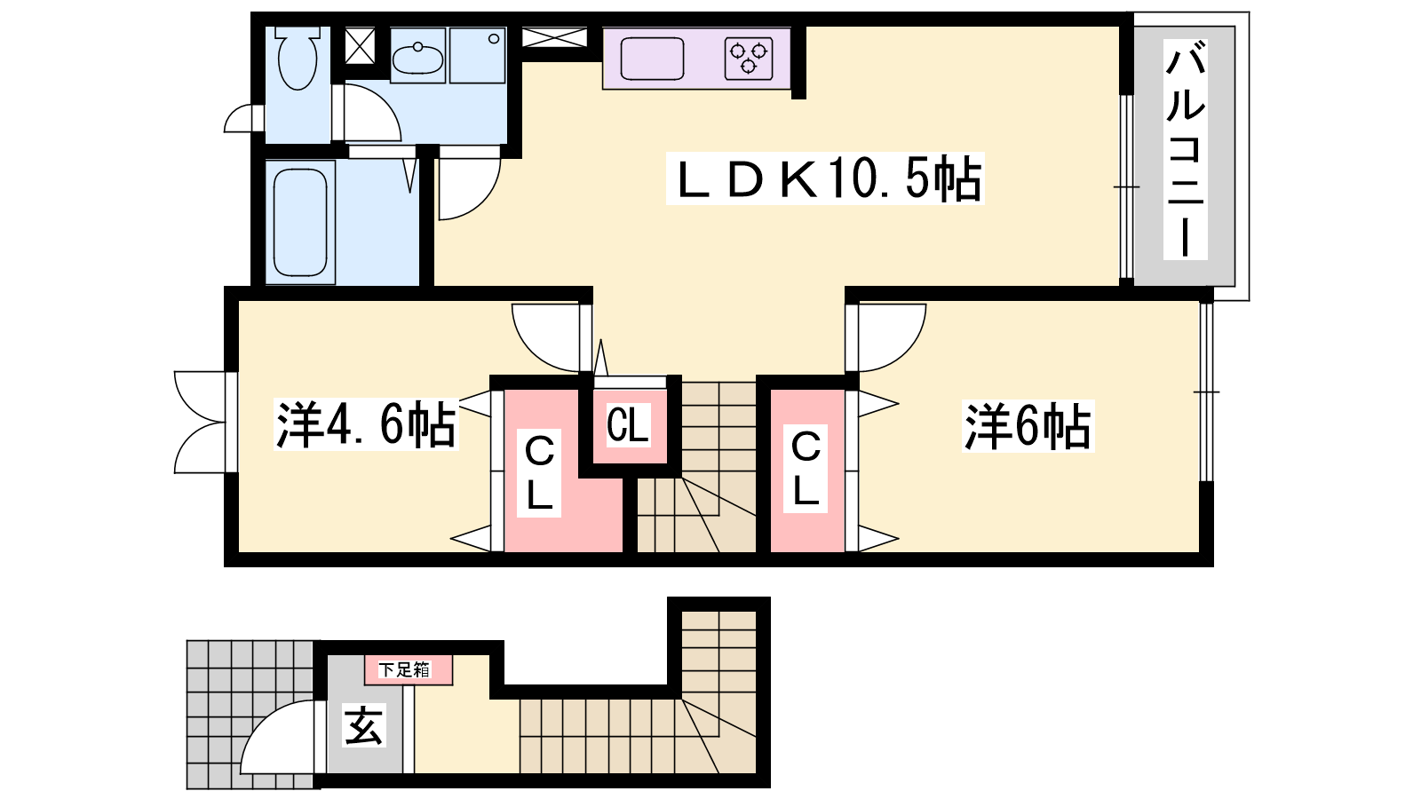 - LDK10.5帖、洋室6帖、洋室4.6帖