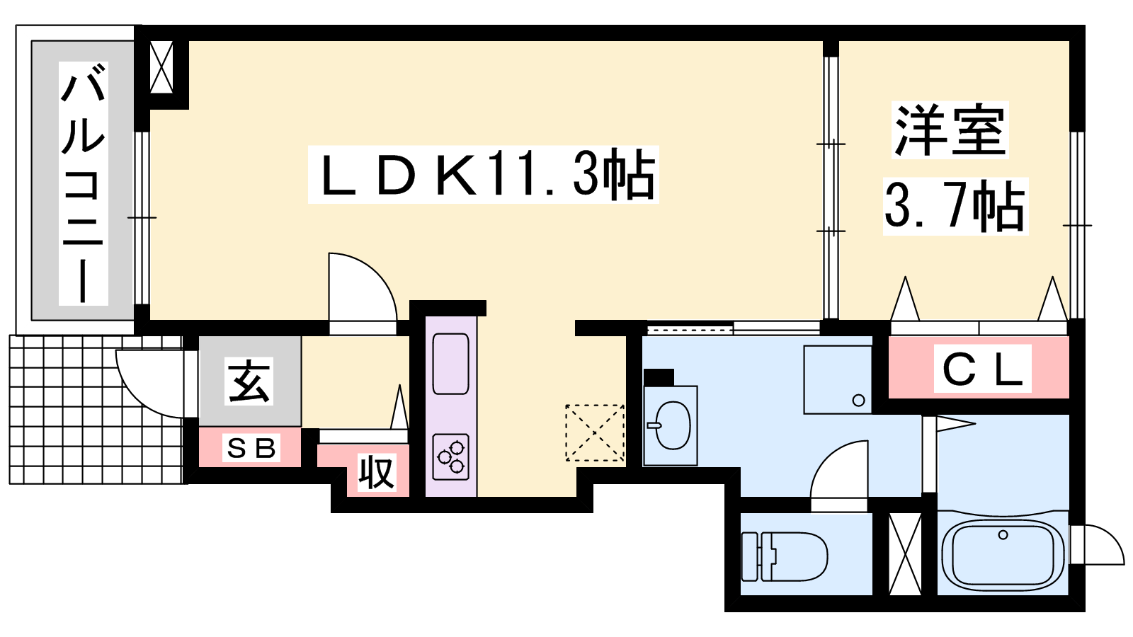 - LDK11.3帖、洋室3.7帖