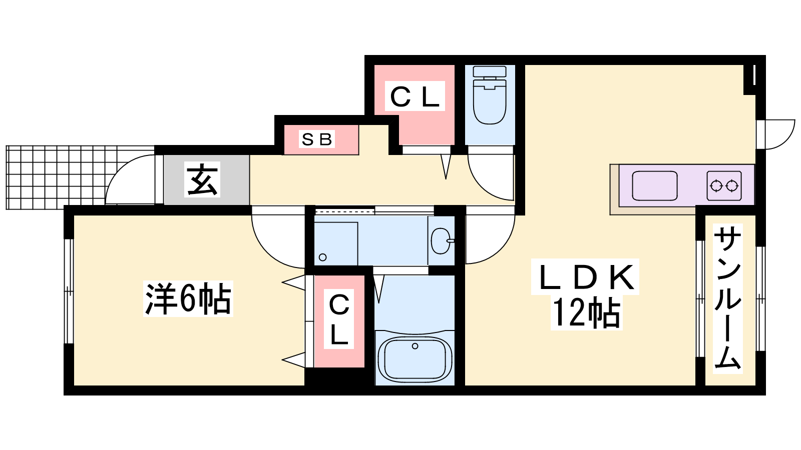 - LDK12帖、洋室6帖