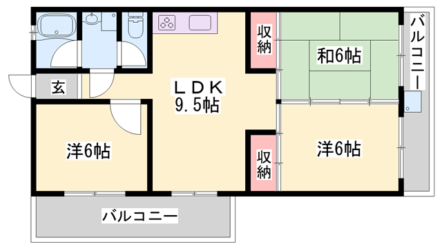 - LDK9.5帖、洋室6帖、洋室5.5帖、和室6帖