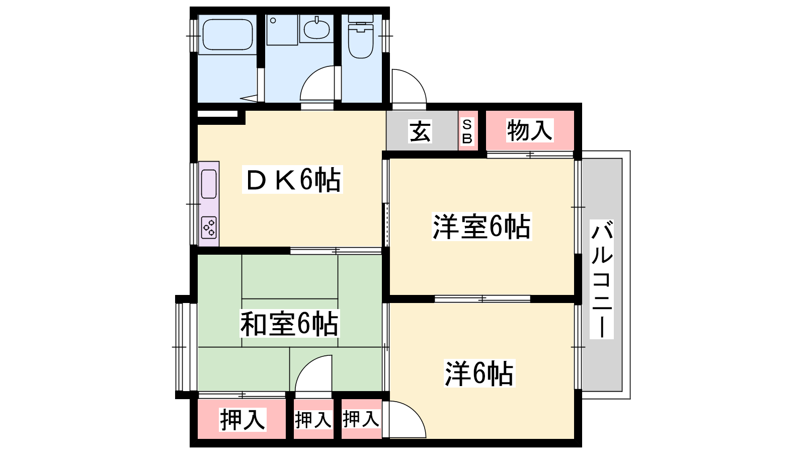 - DK6帖、洋室6帖、洋室6帖、和室6帖