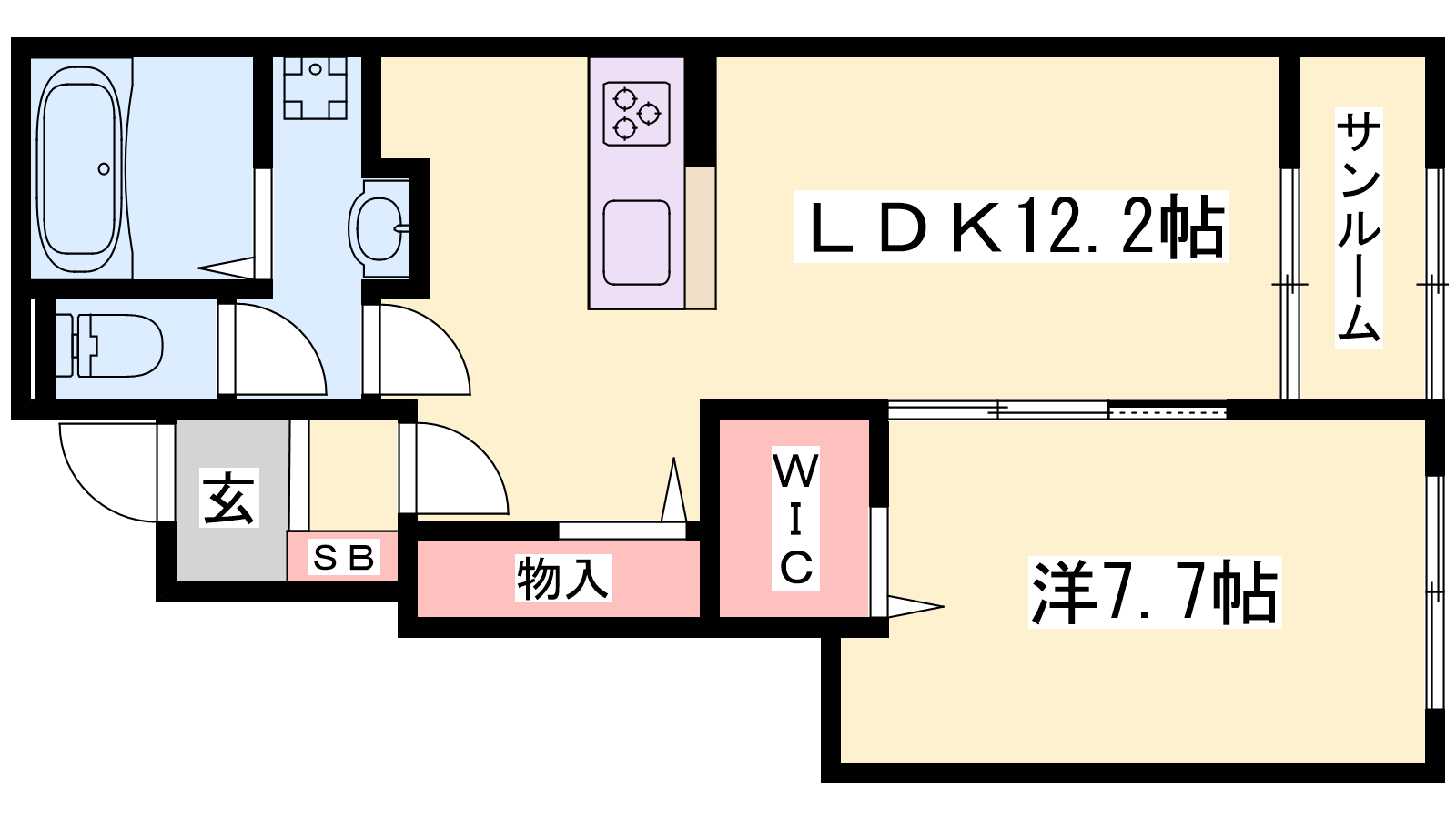 - LDK12.2帖、洋室7.7帖