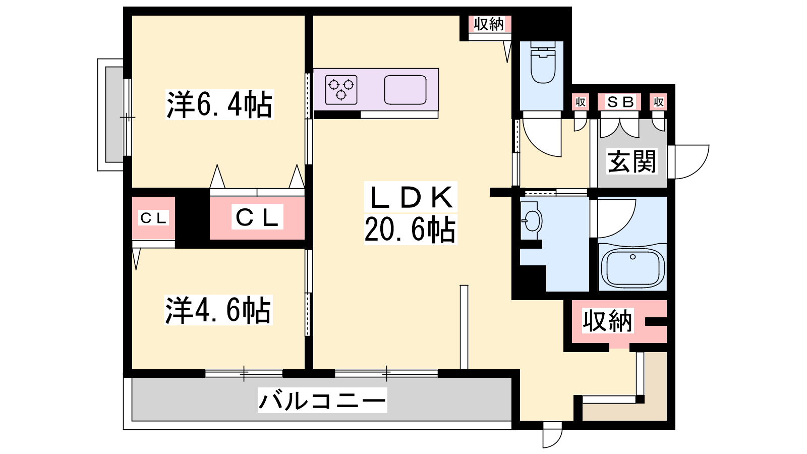 - LDK20.6帖、洋室6.4帖、洋室4.6帖