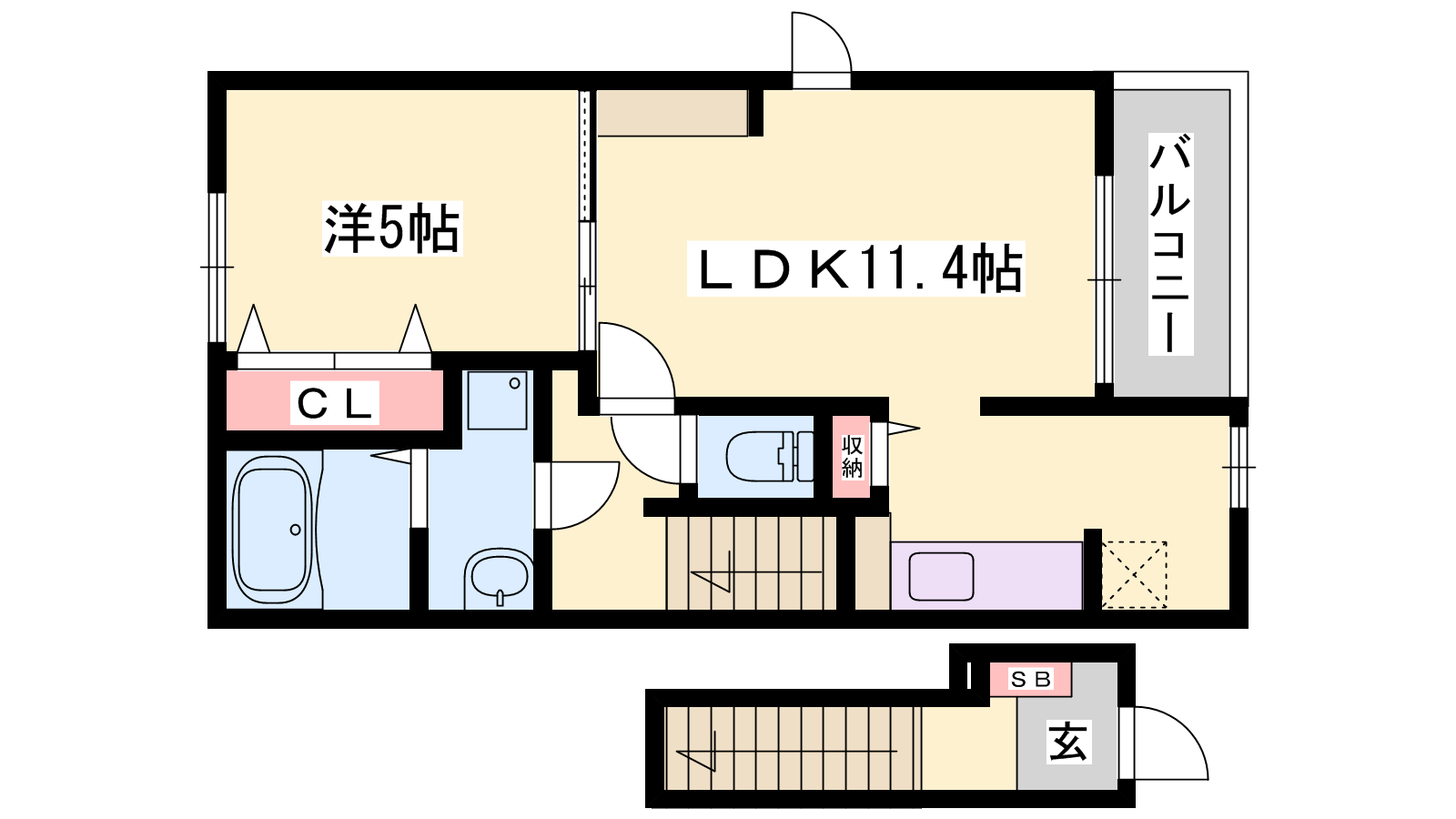 - LDK11.4帖、洋室5帖
