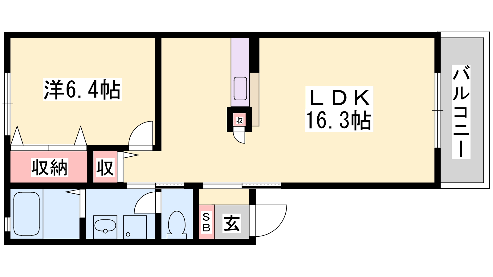 - LDK16.3帖、洋室6.4帖