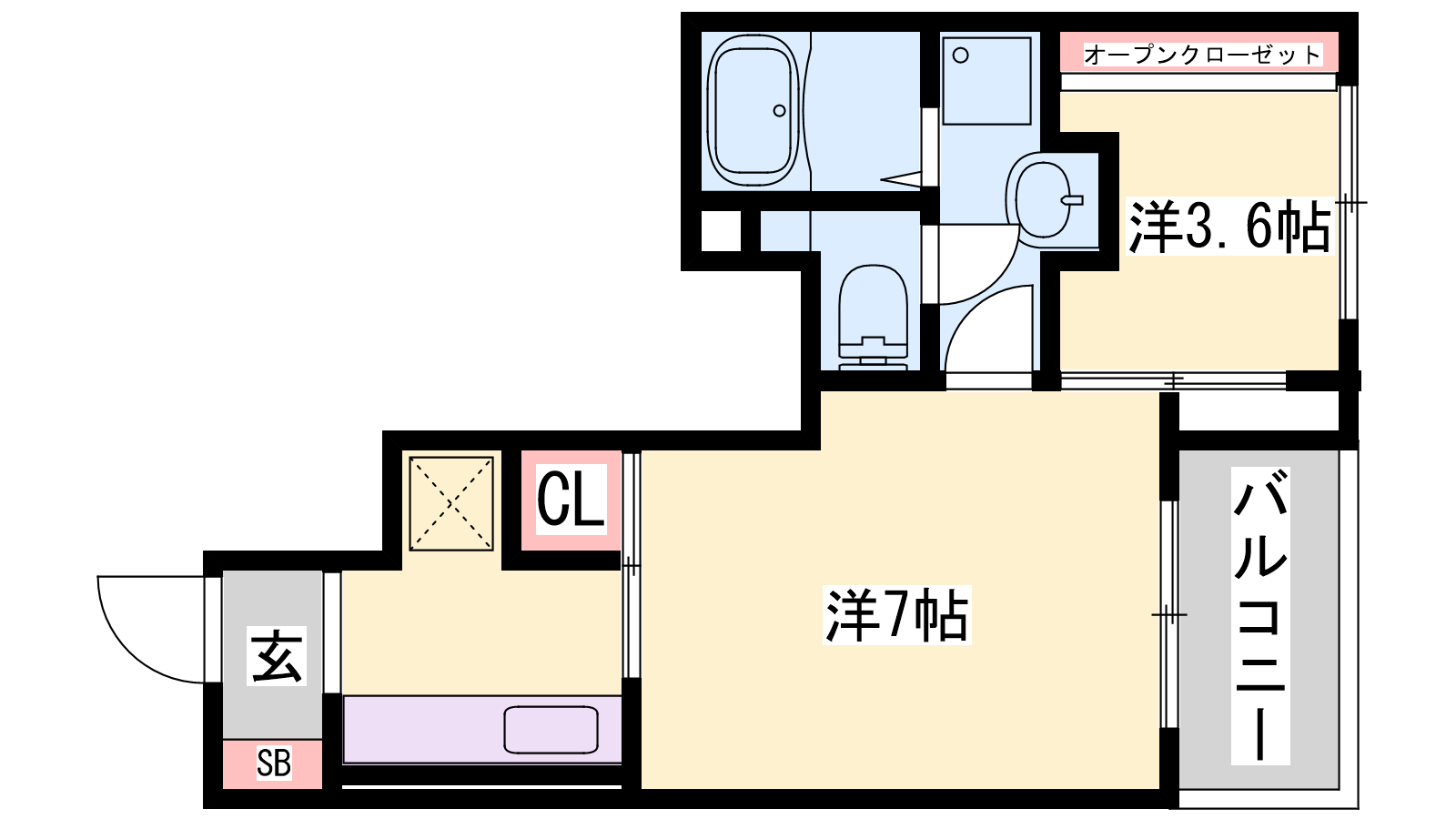 - S3.6帖、洋室7帖