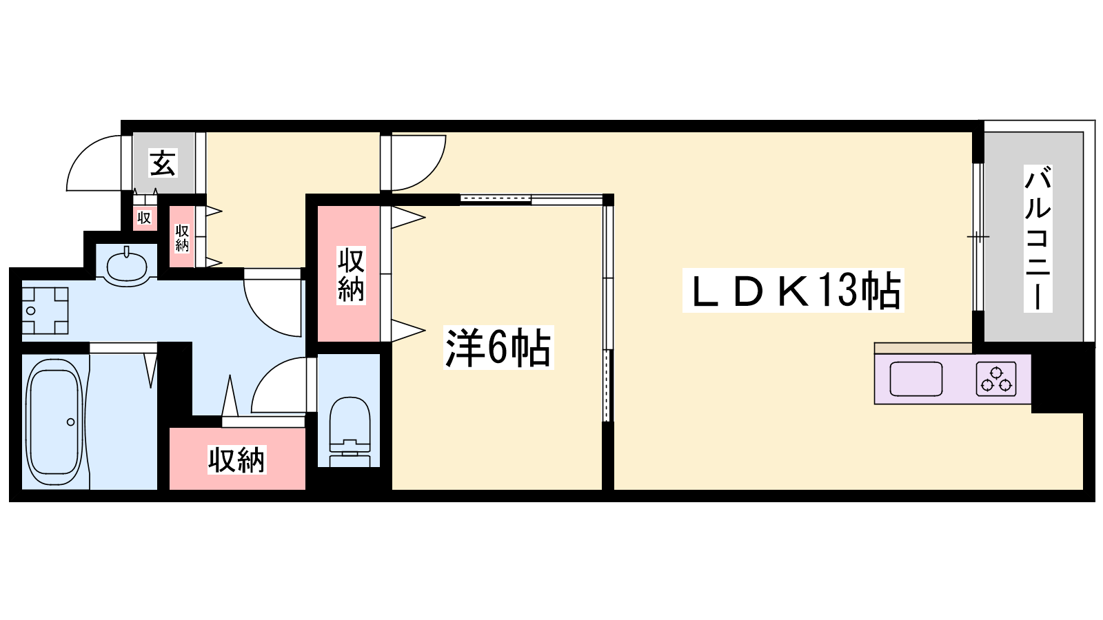 - LDK13帖、洋室6帖