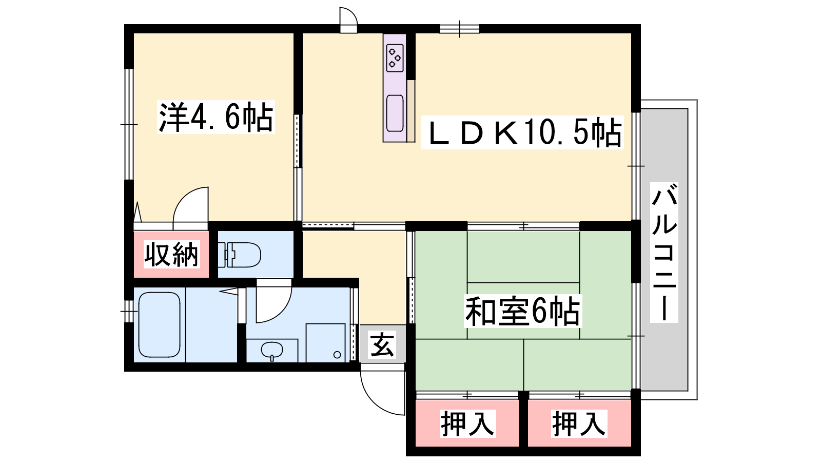 - LDK10.5帖、洋室4.6帖、和室6帖