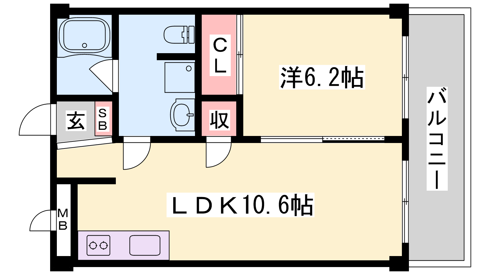 - LDK10.6帖、洋室6.2帖