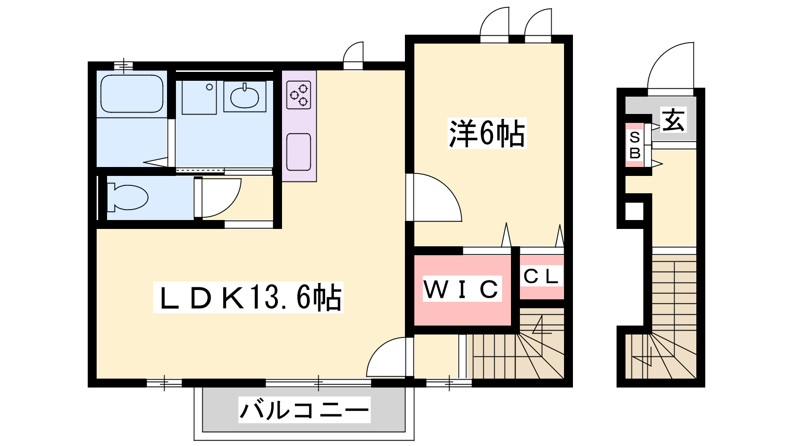 - 洋室13.6帖、洋室6帖