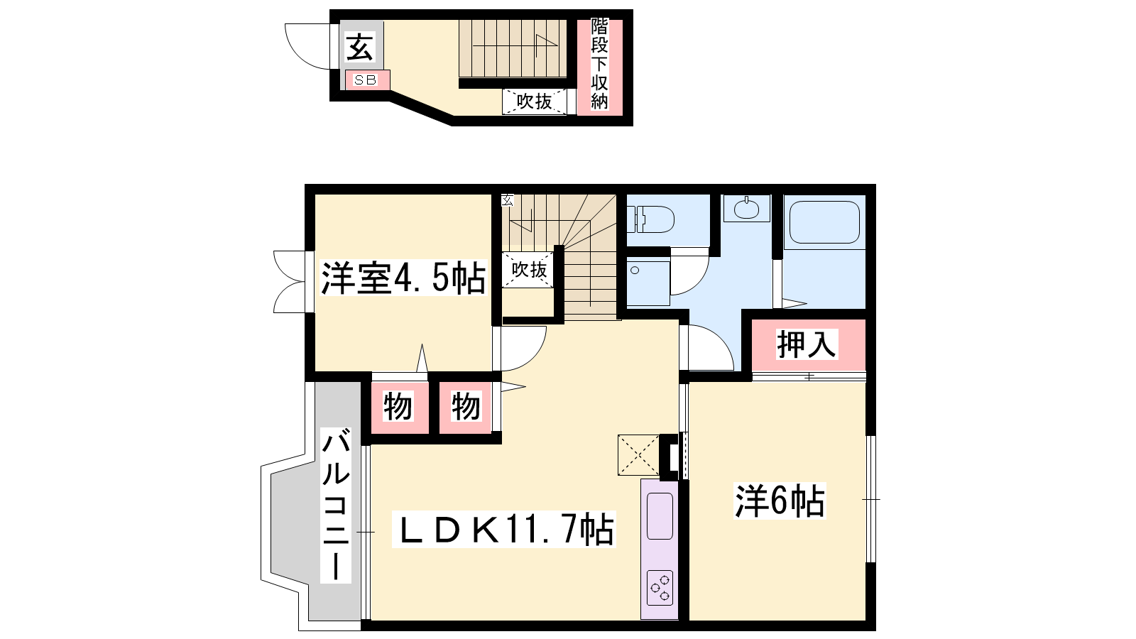 - LDK11.7帖、洋室4.5帖、洋室6帖