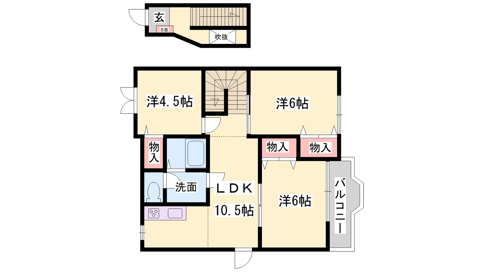 - LDK10.5帖、洋室6帖、洋室4.5帖、洋室6帖