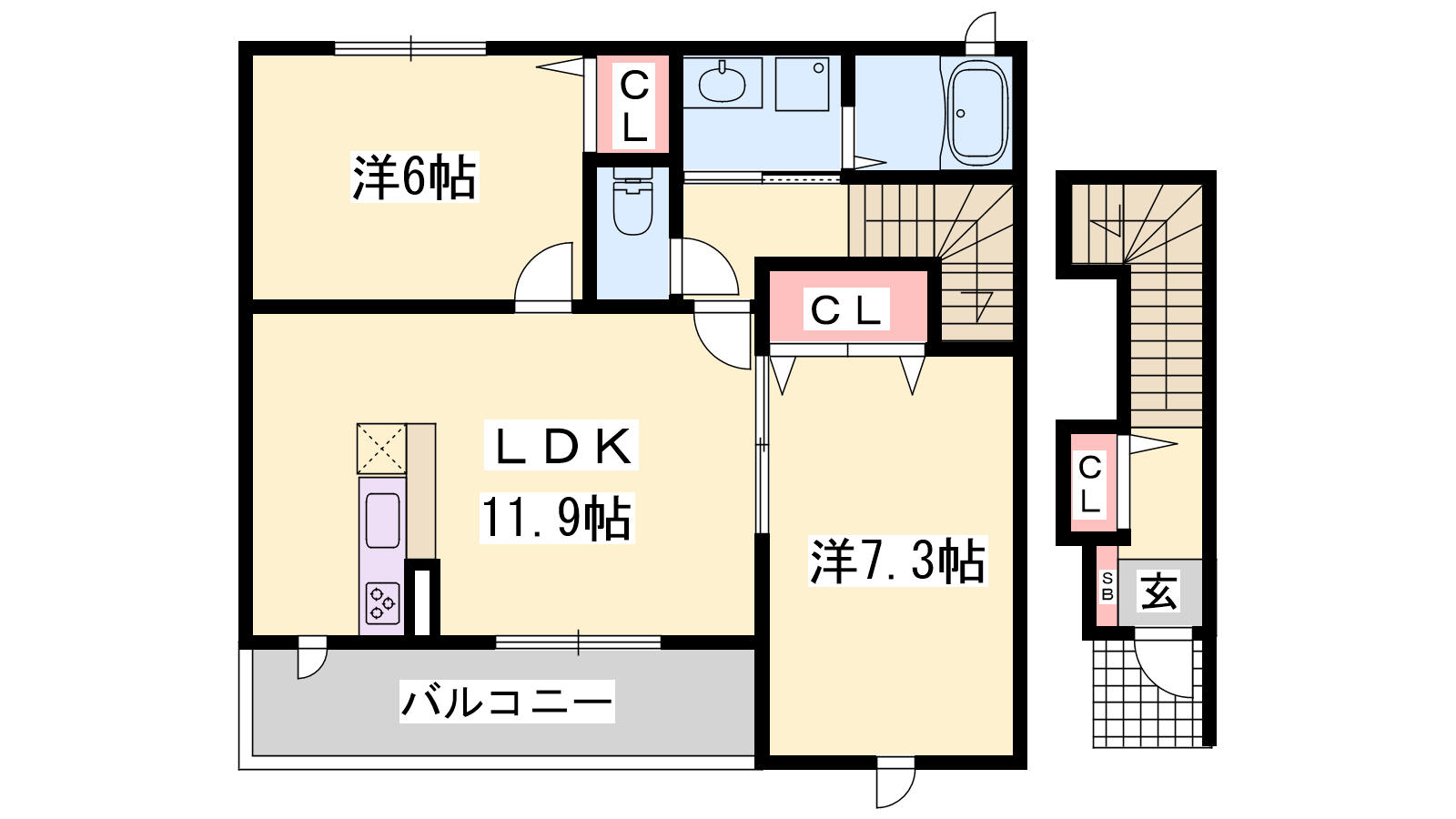 - LDK11.9帖、洋室7.3帖、洋室6帖