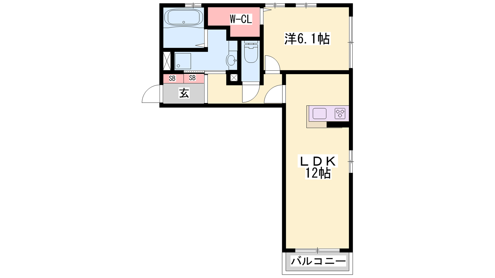 - LDK12帖、洋室6.1帖