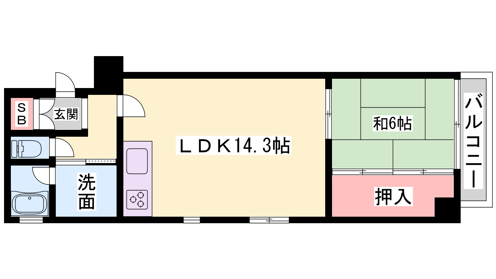 - LDK14.3帖、和室6帖