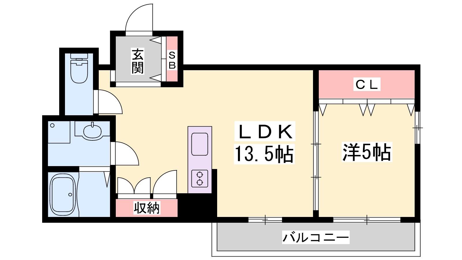 - LDK13.5帖、洋室5帖