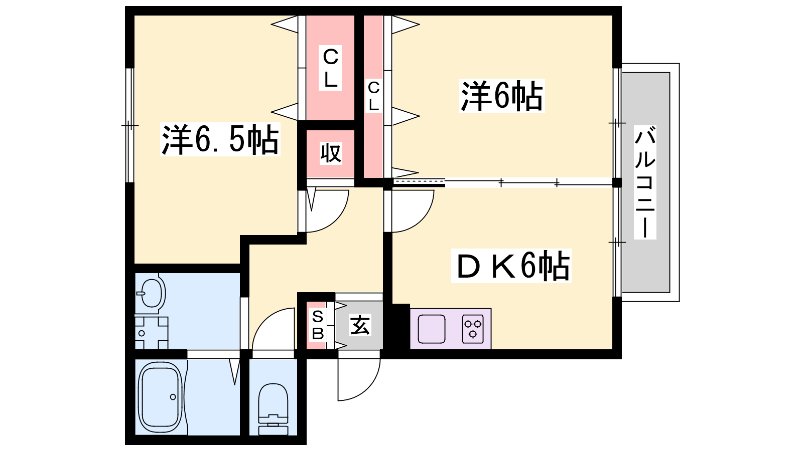 - DK6帖、洋室6.5帖、洋室6帖