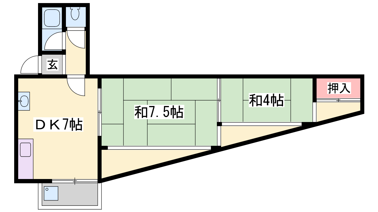 - LDK7帖、和室8帖、和室4.5帖