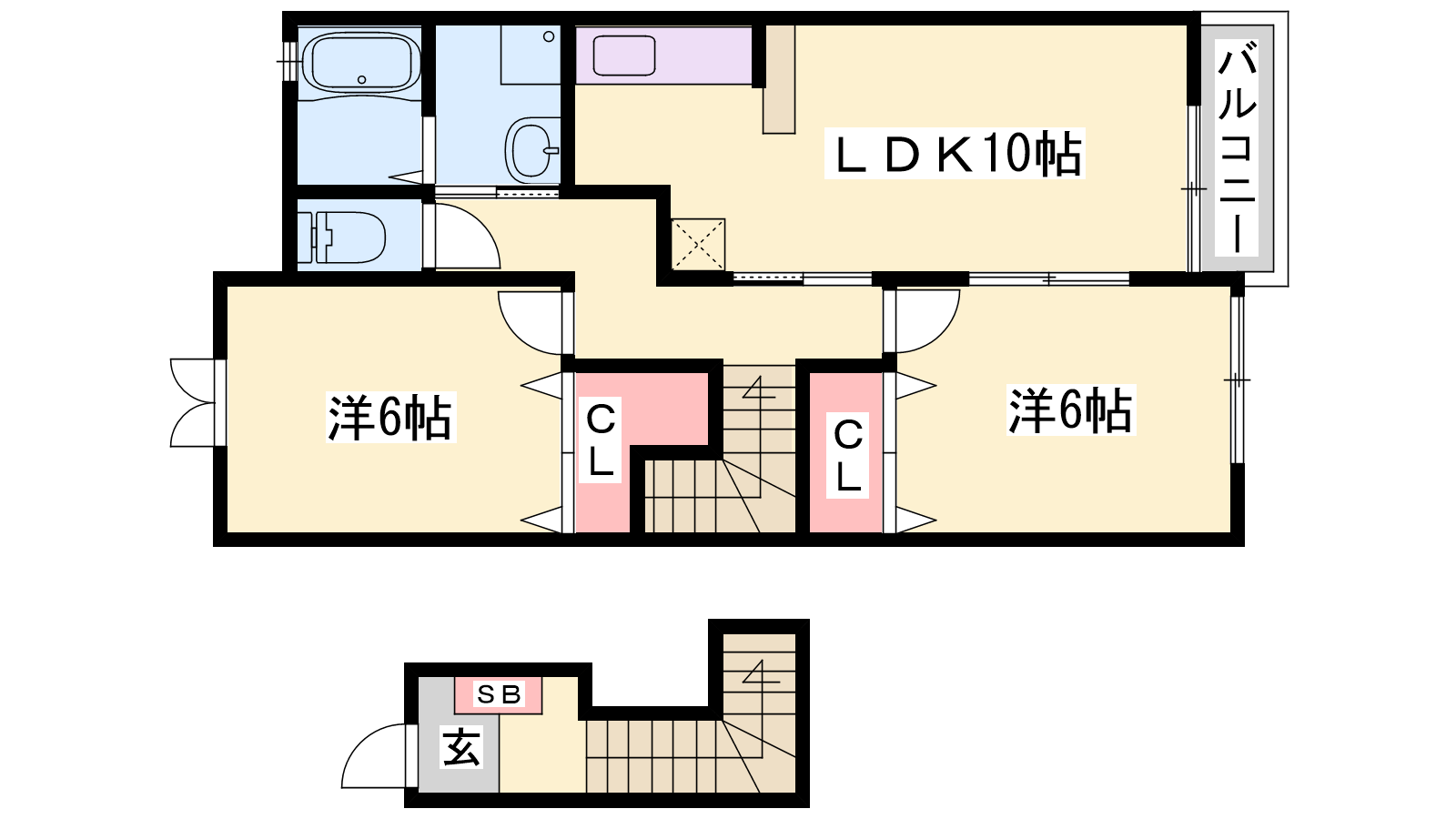- LDK10帖、洋室6帖、洋室6帖
