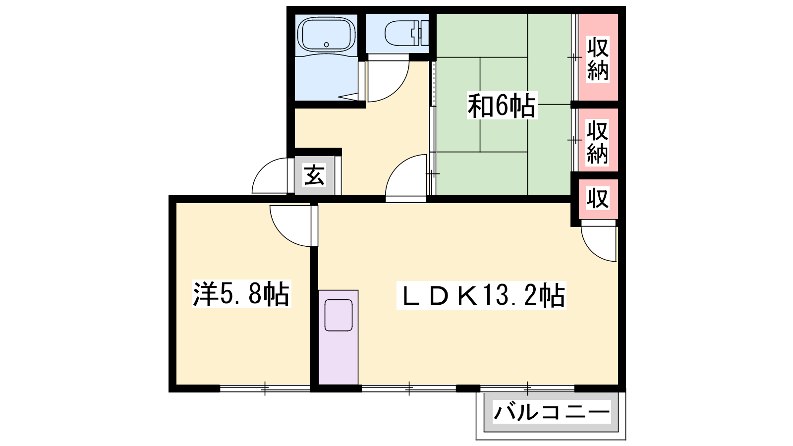 - LDK13.2帖、洋室5.8帖、和室6.1帖