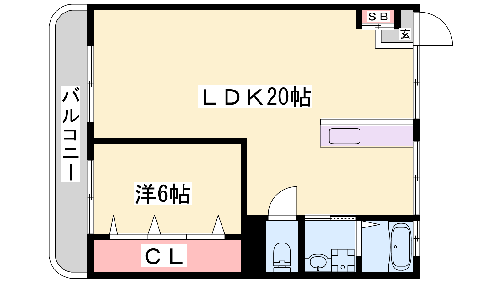 - LDK20帖、洋室6帖