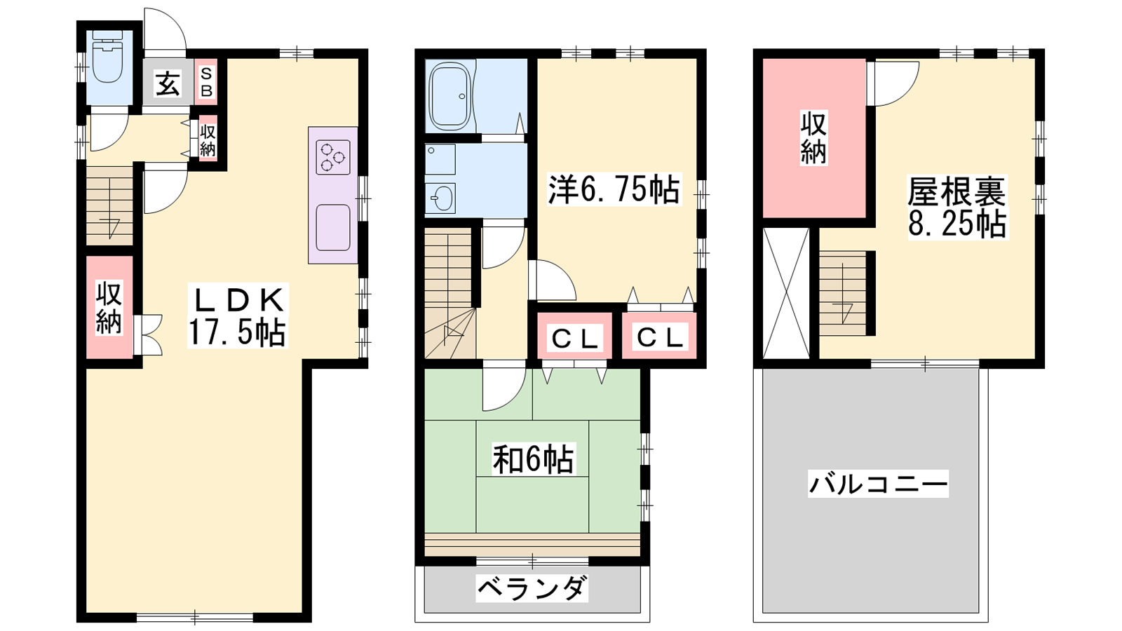 - LDK17.5帖、洋室6.75帖、和室6帖