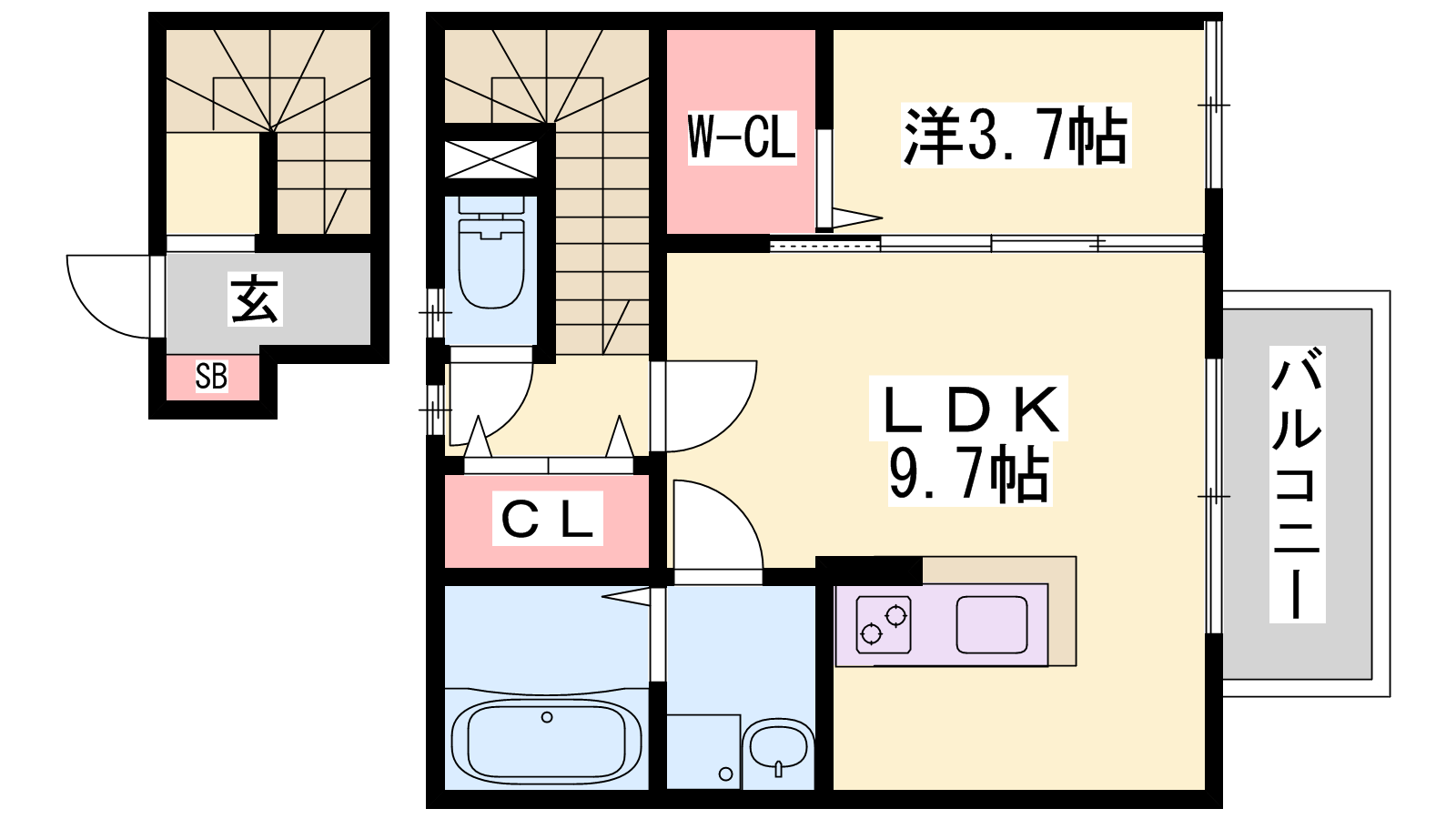 - LDK9.7帖、洋室3.7帖