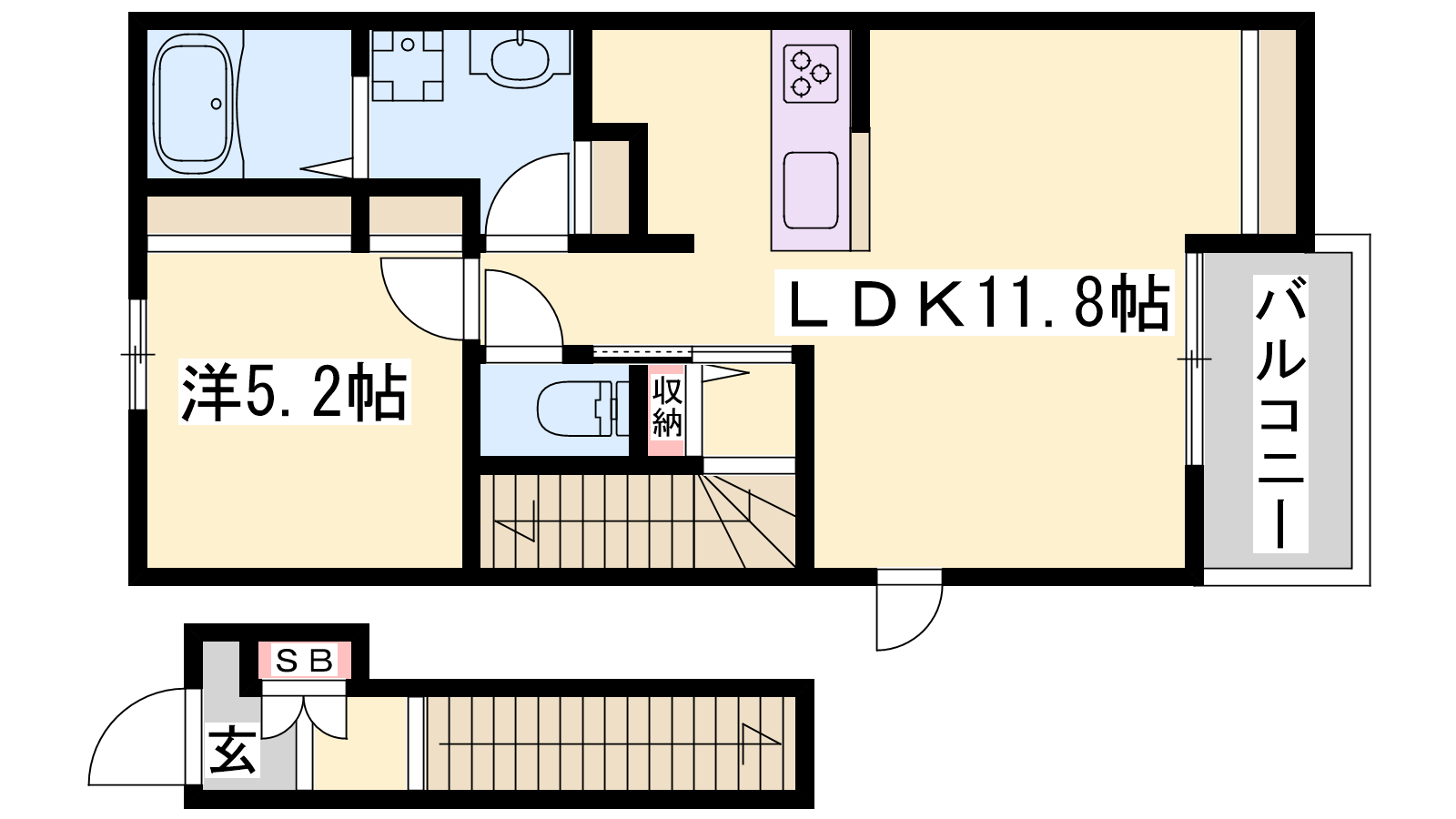 - LDK11.8帖、洋室5.2帖